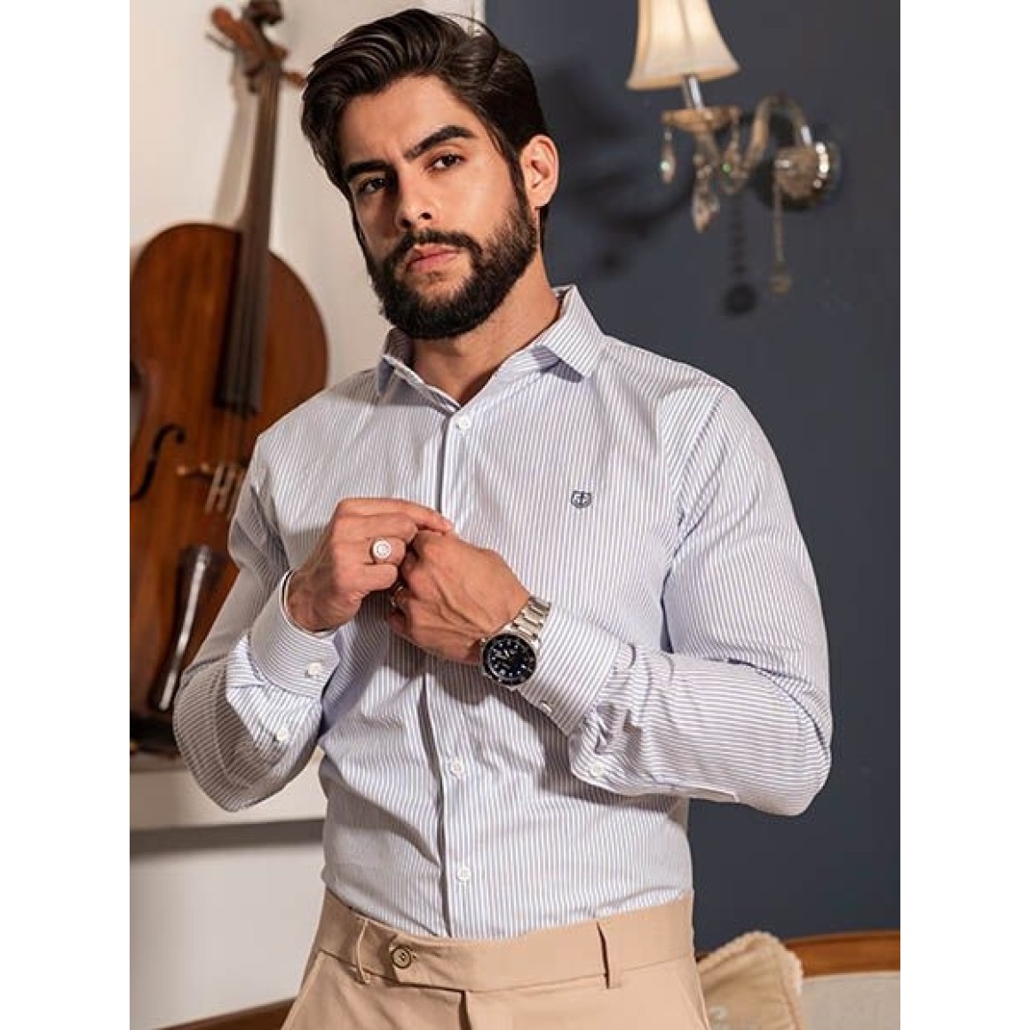 Existem camisas, que são tão atemporais que é impossível ignorar e não lembrar de grandes referências e personalidades usando, uma delas é a clássica camisa com listras náuticas, fundo branco e listra azul. Ela vai te trazer uma aparência de cavalheiro como nenhuma outra.