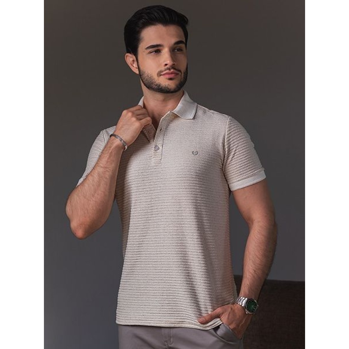 A resposta é a nossa nova polo com linho, ela se diferencia das demais sem perder a elegância, devido a seu diferencial ser na textura de seu tecido que é trabalhado diretamente na trama do tecido, com um dos tecidos mais nobres e atemporais já existentes: O linho, em sua cor natural, trazendo visual sofisticado em um artigo clássico
